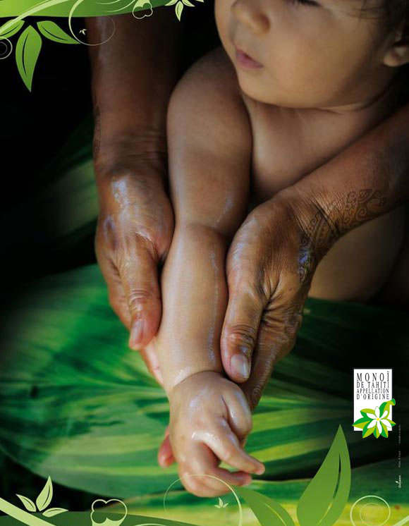 Vivant à cette époque à Tahiti, Hinano, ma propriétaire, m’a conseillé de pratiquer des massages quotidiens de mon ventre avec de l'huile de Monoï. Hinano m’assurait que cette pratique traditionnelle expliquait la quasi inexistence du problème des vergetures chez les tahitiennes.