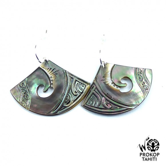 Boucles Oreilles Argent Eventails Nacre Prokop Tahiti BEG18