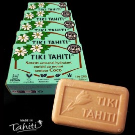 La Boutique du Monoï a confectionné pour vous ce économique lot de 5 savons surgras enrichis au Monoï Tiki fabriqué à Tahiti par La Parfumerie Tiki.