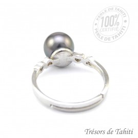 Bague : Ajustable de 53 à 61 mm de diamètre, en Argent 925/00 en Argent et Oxyde Zirconium Rhodié 925/00