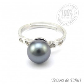 Bague : Ajustable de 53 à 61 mm de diamètre, en Argent 925/00 en Argent et Oxyde Zirconium Rhodié 925/00