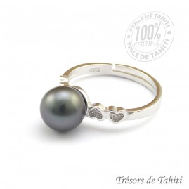 Bague : Ajustable en Argent Rhodié 925/00. Petits coeur en oxyde de zirconium