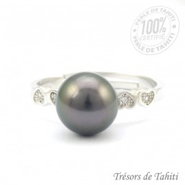 Bague : Ajustable de 53 à 61 mm de diamètre, en Argent 925/00 en Argent et Oxyde Zirconium Rhodié 925/00