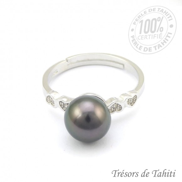 Perle de Culture de Tahiti certifiée, issue d'une ferme perlière de Polynésie française, élevée dans le lagon, à partir d'une huître perlière aux lèvres noires Pinctada Margeritifera.