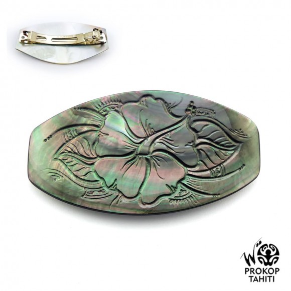 Barrette Cheveux XL Nacre Prokop Tahiti Fleur Hibiscus BAR33