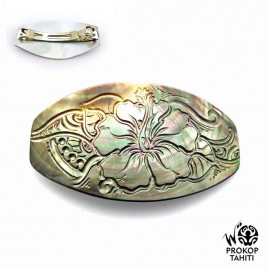 Barrette Cheveux XL Nacre Prokop Tahiti Fleur Hibiscus BAR35
