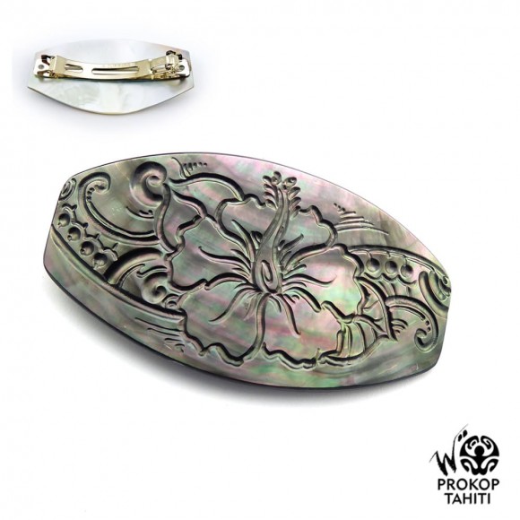 Barrette Cheveux XL Nacre Prokop Tahiti Fleur Hibiscus BAR38