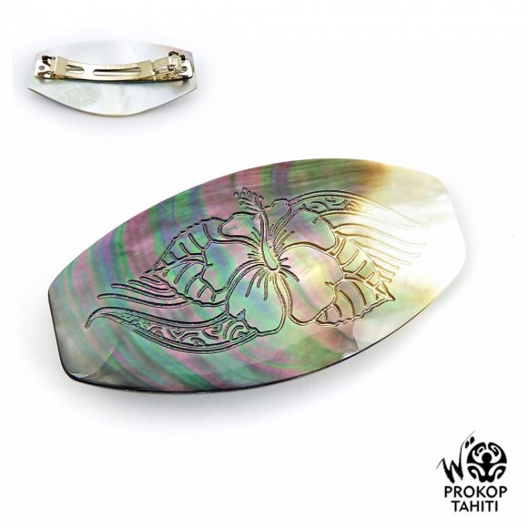 Barrette Cheveux XL Nacre Prokop Tahiti Fleur Hibiscus BAZ34
