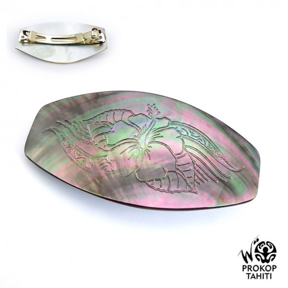 Barrette Cheveux XL Nacre Prokop Tahiti Fleur Hibiscus BAZ47