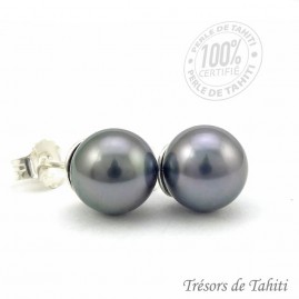 • 2 Perles de Tahiti Semi-Rondes : Couleur Gris Light aux légers reflets verts et aubergines, avec un beau lustre, et un diamètre de 8,80 et 8,80 mm. Qualité AA+ selon Gemmologica Institute of America. Très légères occlusions naturelles éparses.