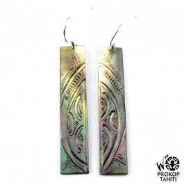 La Boutique du Monoï a sélectionné pour vous cette élégante paire de boucles d'oreille en nacre, entièrement fabriquée à Tahiti par Woïta Prokop, pour sa qualité remarquable.
