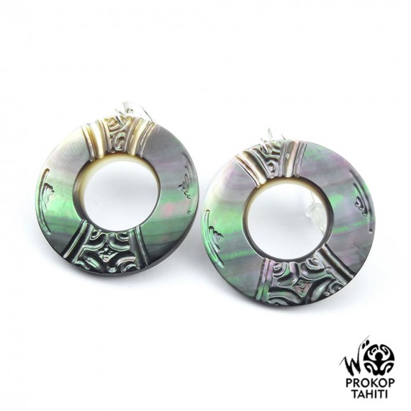 Boucles Oreilles Argent Creoles Nacre Gravee Prokop Tahiti BRC21