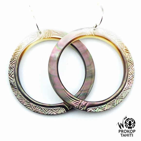 La Boutique du Monoï a sélectionné pour vous cette élégante paire de boucles d'oreilles en nacre, entièrement fabriquée à Tahiti par Woïta Prokop, pour sa qualité remarquable.