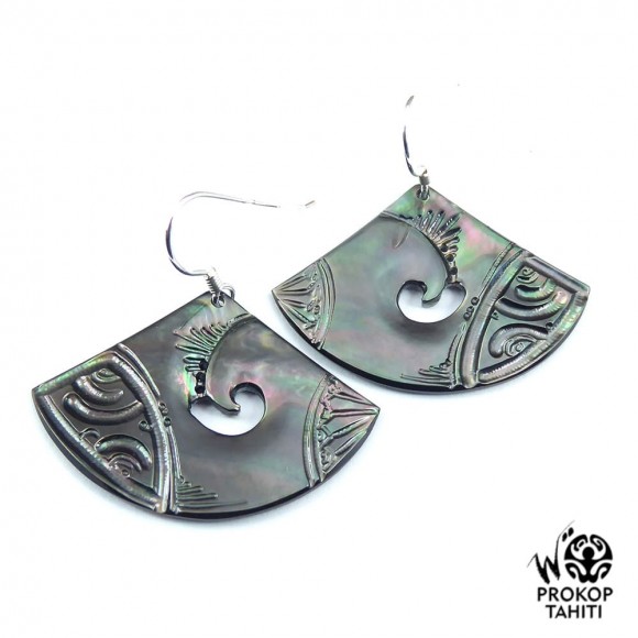Boucles Oreilles Argent Eventails Nacre Prokop Tahiti BEG20