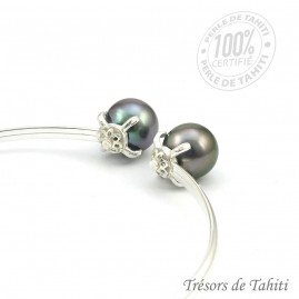 • 2 Perles de Tahiti Semi-Ronde et Ovale : Couleur Gris Dark Blue et Gris Medium Peacock, avec chacune un beau lustre, et un diamètre de 10,04 mm et 10,70 mm. Qualité AA+ selon Gemmologica Institute of America.