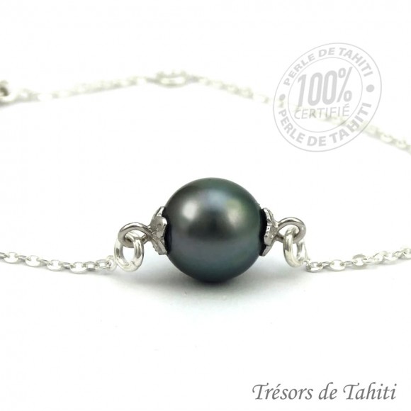 Perle de Culture de Tahiti certifiée, issue d'une ferme perlière de Polynésie française, élevée dans le lagon, à partir d'une huître perlière aux lèvres noires Pinctada Margeritifera.