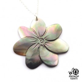La Boutique du Monoï a sélectionné pour vous cet élégant pendentif en nacre gravée entièrement fabriqué à Tahiti par Woïta Prokop pour sa qualité remarquable.
