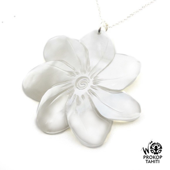 La Boutique du Monoï a sélectionné pour vous cet élégant pendentif en nacre gravée entièrement fabriqué à Tahiti par Woïta Prokop pour sa qualité remarquable.