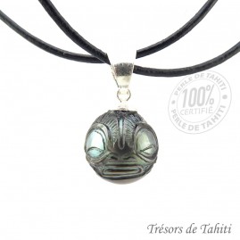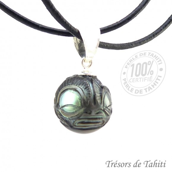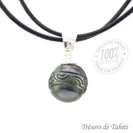 • Perle Gravée de Tahiti Semi-Ronde : Couleur Gris Dark Vert, avec un beau lustre, et un diamètre de 12,85 mm.