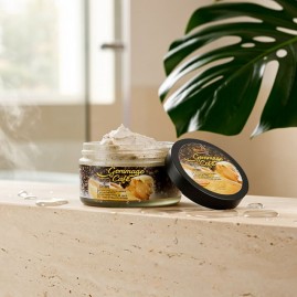 • Gommage doux et fin issu de l'association de particules exfoliantes de coques de Noix d'Argan et des micro-grains de café de Tahiti.