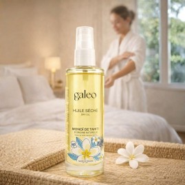 C’est une merveilleuse composition aromatique inédite, à la fois florale et ensoleillée que vous propose Galéo pour cette gamme au Monoï de Tahiti Appellation d’Origine. Dès les 1ères notes de tête, vous plongez dans l’univers du Monoï et de ses fleurs blanches de gardenia taitensis, la fleur de Tiare Tahiti, qui s’enrichissent au cœur des parfums du Muguet mêlés de notes de Mimosa et de Fleur d’Oranger. Des parfums exotiques de Noix de Coco et de Vanille viennent soutenir et prolonger ces notes florales délicates. La restitution de cette composition aromatique unique peut être plus ou moins prononcée en fonction du produit Galeo utilisé.