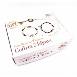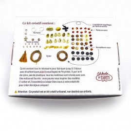 La Boutique du Monoï a sélectionné pour vous ce Kit DIY pour créer soi-même 3 bijoux personnalisés, 2 bracelets et 1 collier, avec des coquillages provenant des îles de Polynésie française.