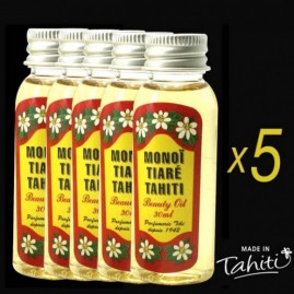La Boutique du Monoï a élaboré pour vous ce lot de 5 Monoi Tiki Tahiti 30mL fabriqués à Tahiti par La Parfumerie Tiki depuis 1942.