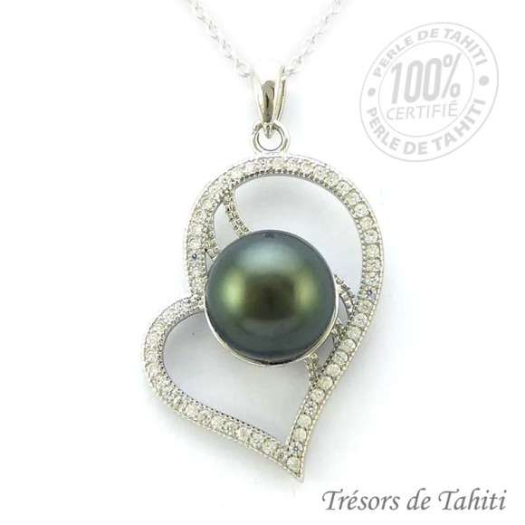 Perle de Culture de Tahiti certifiée, issue d'une ferme perlière de Polynésie française, élevée dans le lagon, à partir d'une huître perlière aux lèvres noires Pinctada Margaritifera.