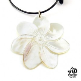 La Boutique du Monoï a sélectionné pour vous cet élégant pendentif en nacre gravée entièrement fabriqué à Tahiti par Woïta Prokop pour sa qualité remarquable.
