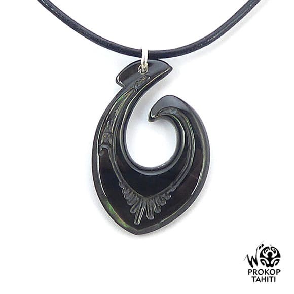 La Boutique du Monoï a sélectionné pour vous cet élégant pendentif en nacre gravée entièrement fabriqué à Tahiti par Woïta Prokop pour sa qualité remarquable.