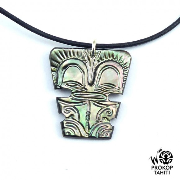 Pendentif Nacre Gravee Prokop Tahiti Mini Tiki Protecteur PTK45